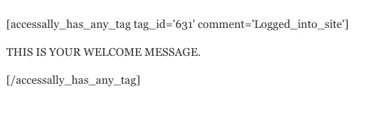 When the shortcode is added, make sure the two parts “wrap” around the welcome message, as in this screenshot: