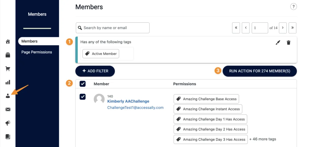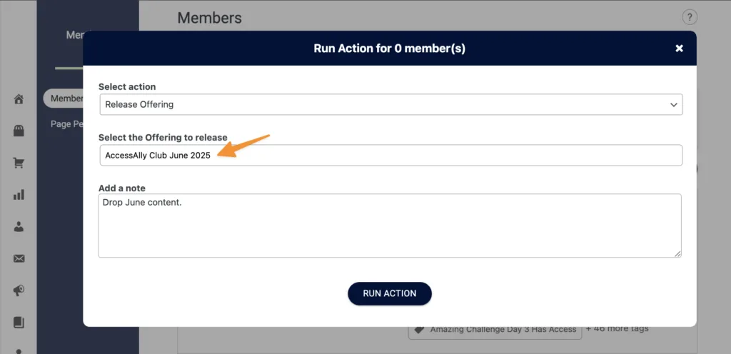 On the date you would like to release this offering. Use the AccessAlly Members tab (shown in image below by the orange arrow.)