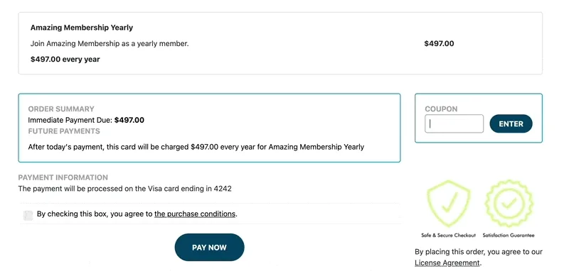 Create unique and tailored promotions for your subscriptions! Offer one discount for the first payment to attract new customers and a different discount for recurring payments to keep them subscribed.
