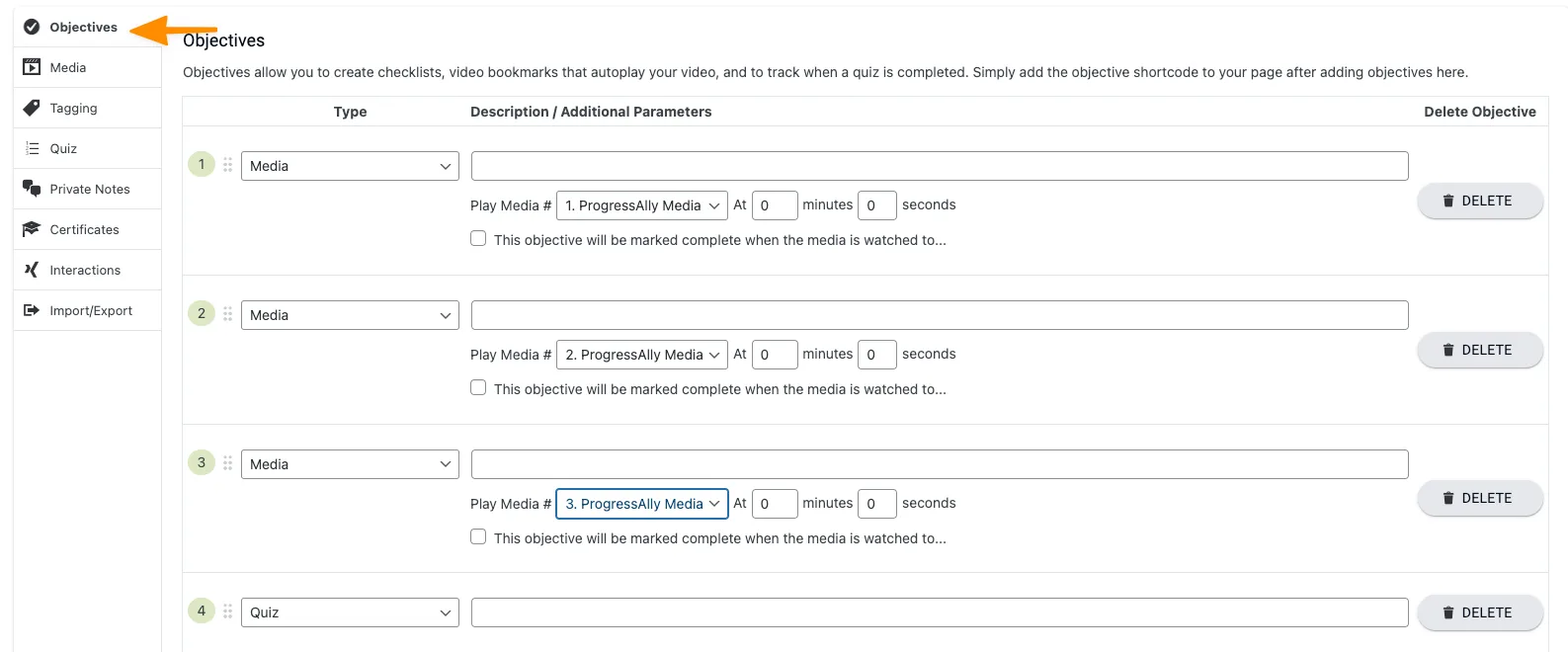 Step 3: Add Objectives to each of your Course Activities