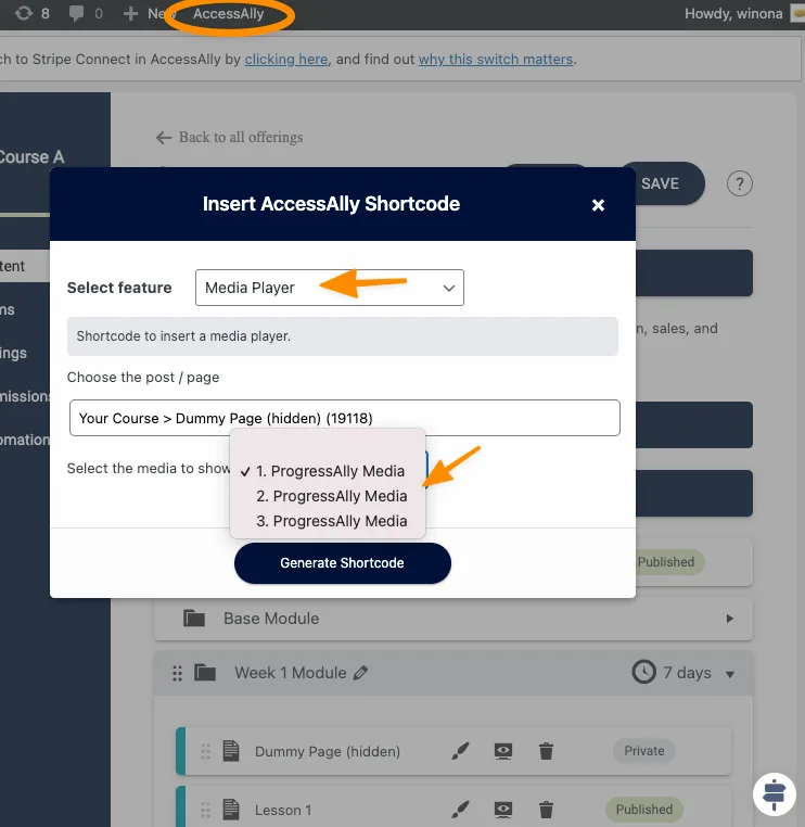 This is how to find the shortcode for the course activity that you want to display on your Module page: