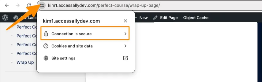 Review the page link in your browser bar. Each browser will display secure links differently. You will see the word “Secure” a padlock symbol, or an icon to the left of the link that opens a popup box to show the page is secure.