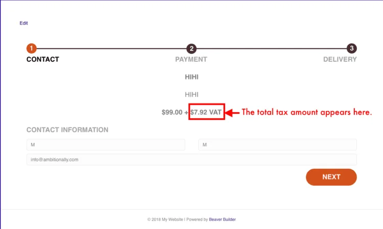 - Review the order form to ensure that the tax is included. If configured properly, the order form will include a line for your new tax as demonstrated in the screenshot below.