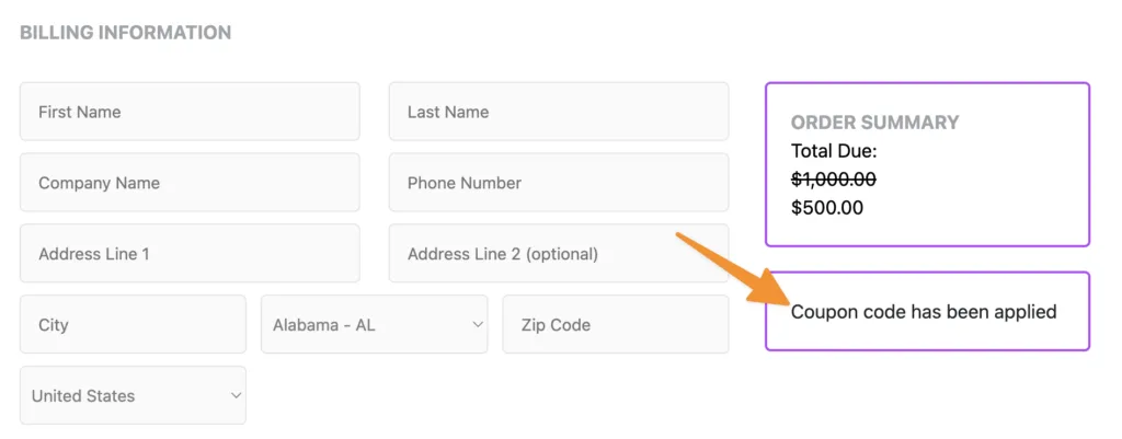 In your marketing emails, you can create a “Magic Link” to automatically apply your promo code discount to an order form.