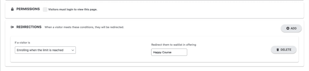 The waitlist option redirects someone when there are no more available spots or the dates for enrollment have passed. This option has a form that applies a waitlist tag so you’ll know who wants in on your next round.