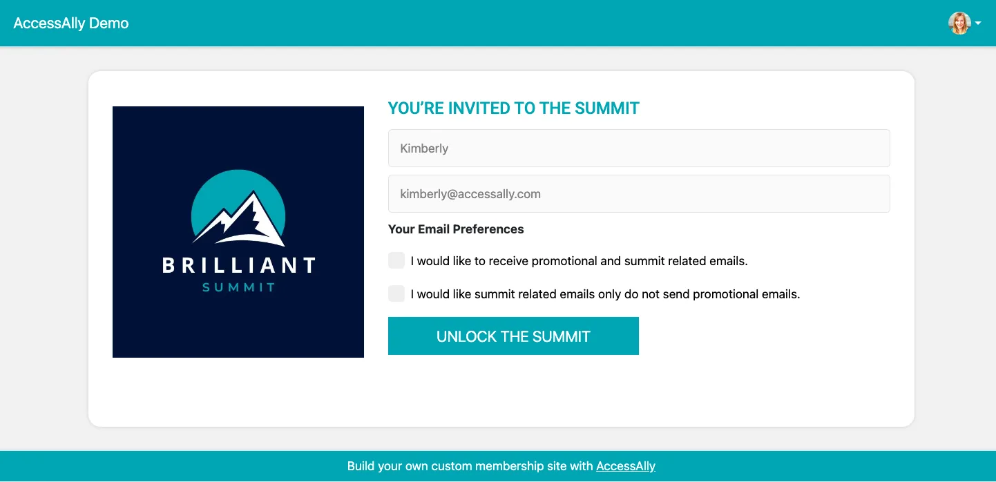 - Participants sign up and start immediately. With this option AccessAlly Emails can unlock each day of the summit and send a reminder email. Click here to see how to use AccessAlly Emails.