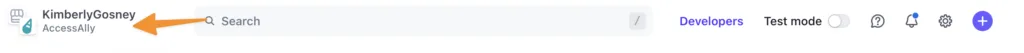 In the top left corner note the exact name of your existing AccessAlly Stripe account. You will need this in the next step.