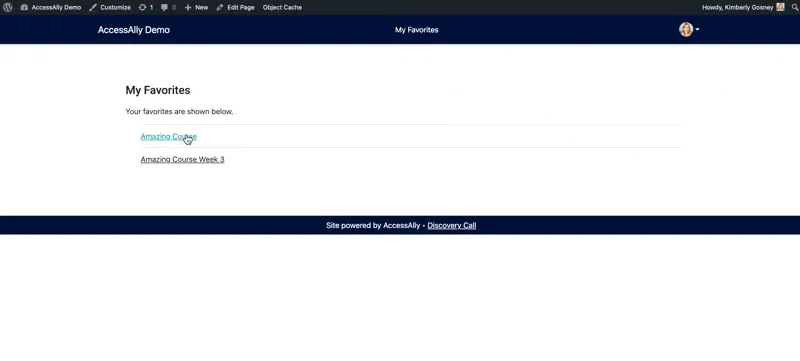 In this article, you’ll see how to add a “Favorites” button so members can select favorite pages or posts and see these in your AccessAlly site.
