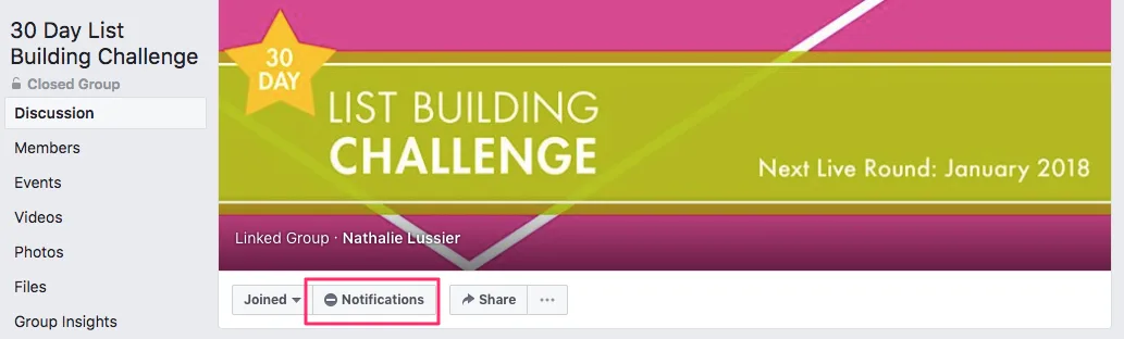 The 30 Day List Building Challenge Facebook group is semi-public. This means that any current member can approve joining requests.
